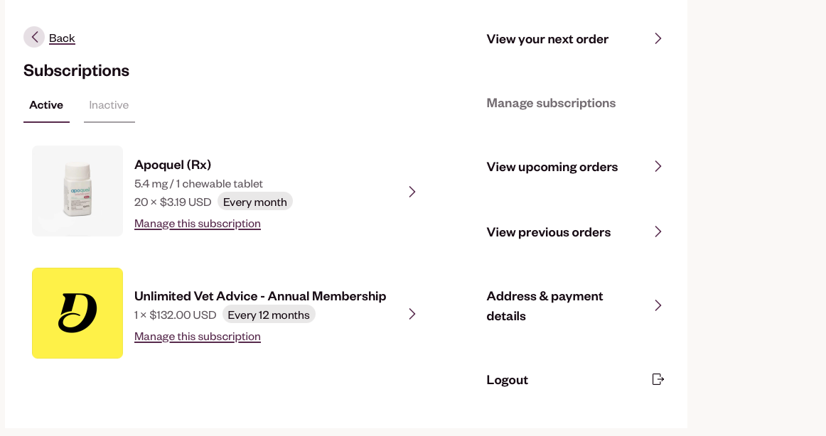 4. Click the subscription you want to pause or cancel and then click the manage this subscription button below